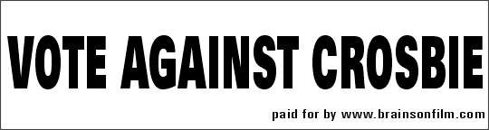 The Disco Dolls In Hot Skin incident. This shitty John Holmes' vehicle had the distinction of being shot in 3-D. It was resurrected post Boogie Nights and in 1999 distributed on the typical Arthouse circuit as a lame homage to the goofier days in porn. Well, when it wound up in Lexington, Kentucky at the Kentucky Theatre, a Councilmember with loftier political goals, didn't find the humor in it and went apeshit crazy. He demanded Fred Mills, the manager of the theatre, be arrested, he wanted the film confiscated. He organized protests, the Lexington Herald-Leader of course covered the whole thing. The Councilman had so much say because of a fire, which had been set by a disgruntled employee in an adjacent business, (a middle Eastern owned Authentic Kentucky-Style Fried Chicken place) that left the Kentucky Theatre majorly damaged. It set there for over 2 years, before the Lexington-Fayette Urban County Government stepped in and purchased the whole building that the theatre was housed in. Many grumbled, sure they wanted the theatre back but was the city government going to manage the theatre and the films that came through? When it was decided that Fred Mills would stay, that he would manage just as before, and that the government wasn't in the theatre business and would stay out of operations, a collective sigh was heard throughout the Lexington underground, and really, throughout the community who had grown accustomed to the Kentucky Theatre's diverse film offerings. Mr. Scott Crosbie didn't see it that way, the reverberation of "I don't want my tax dollars going to show that filth" was the high decibal hum from his church-going followers. There was already a strong, organized anti-porn campaign present within the city. The White-Ribbon Against Pornography campaign involved parishioners taping little white ribbons on their car antennas and such to signify they hated porn. The city's half dozen strip clubs were involved in a major war over pasties and there had been raids at the 3 adult book stores. Someone was out the clean up our town whether we wanted it clean or not. Crosbie, obviously, no moron, could see the votes pouring in if he got on this bandwagon. And so, there he is now, the steerman on the Self-Righteous Express, as he has announced his quest to be Lexington's next Mayor...we are asking all of Lexington's open-minded public to not let that happen. Do you want ANY Mayor to decide what films you can or cannot watch? Should the government dictate OUR community standards for us? Can you trust a 30 year-old male who doesn't have an appreciation for John Holmes? Brains On Film has decided to begin our own campaign to stamp out censorship and stop Scott Crosbie from hijacking the Mayoral race. NO CENSORSHIP, NO CROSBIE will be our battle cry! There are 3 other very capable candidates to choose from, so vote Against Scott Crosbie by electing someone else. Beginning April 1st. Stickers will be available at various outlets in Central Kentucky or you may email us and we will send you one. NO CENSORSHIP, NO CROSBIE!